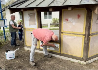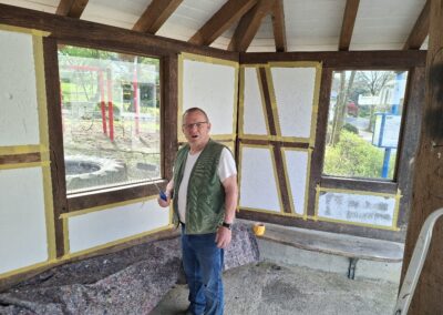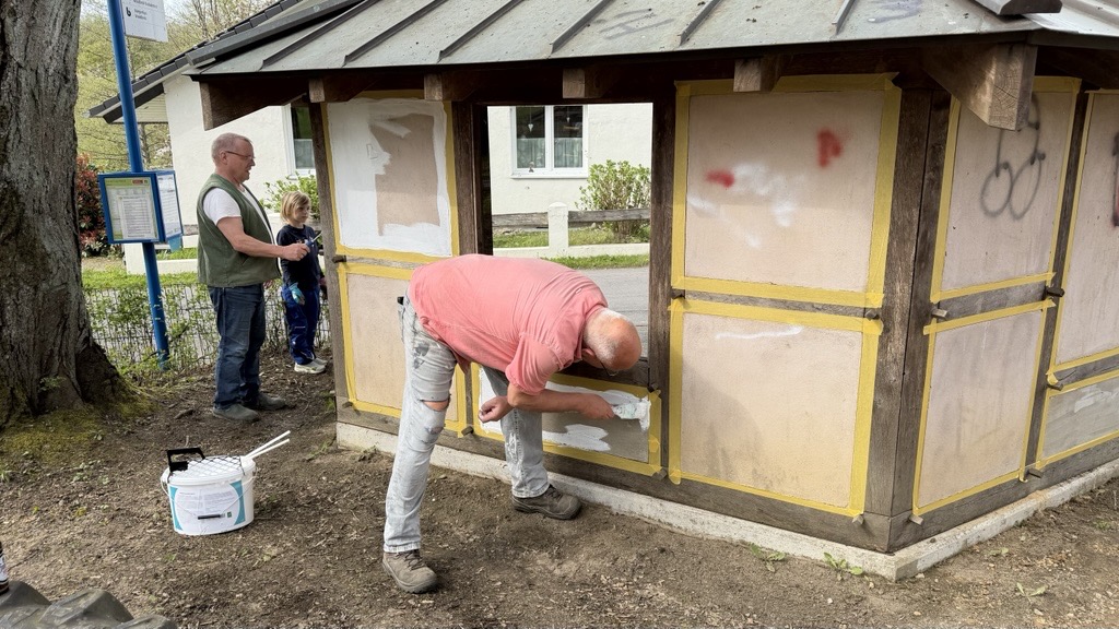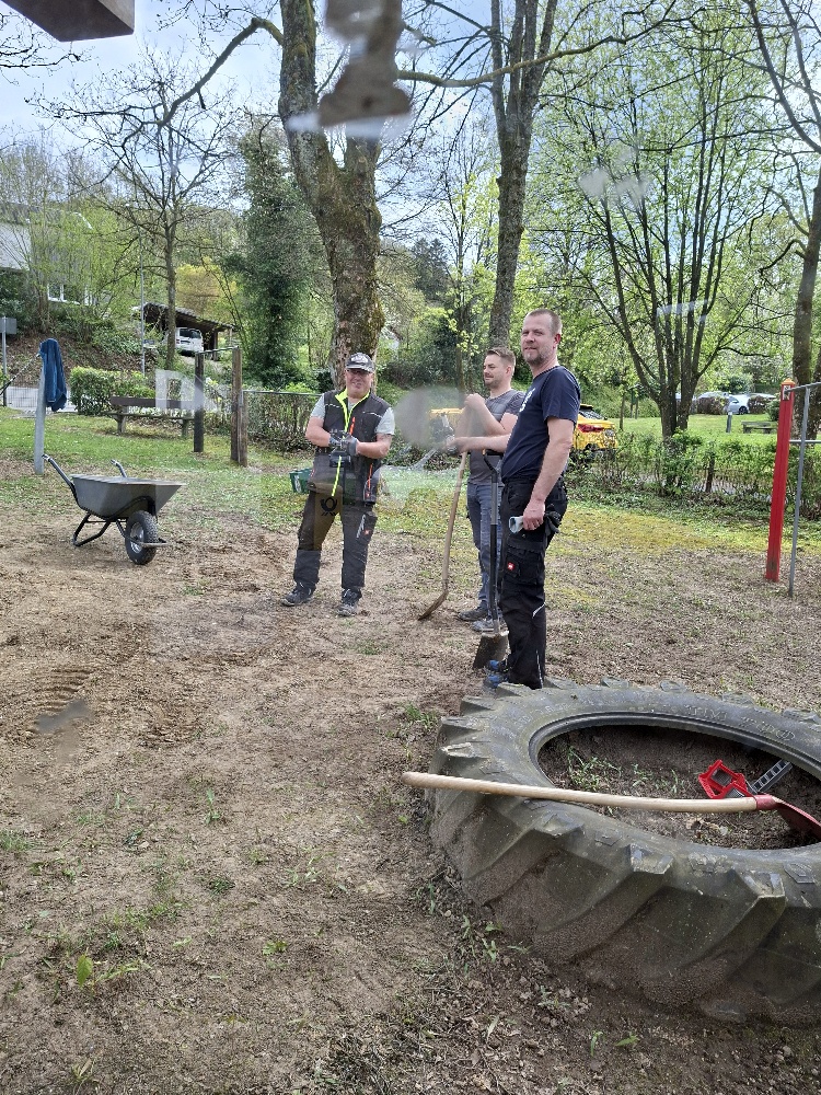 Am Freitag, dem 17.04. war es soweit. Die letzten Arbeiten am Spielplatz wurden erledigt. Die neue Röhre mit der Rutsche ist fertig eingebaut, die Erde ist verfüllt, die Spielgeräte gereinigt und das Bushäuschen erstrahlt in neuem Weiß. Nun muss der Rasen nur noch anwachsen. Bei reichlich verwendetem Dünger sollte dies in gut vier Wochen der Fall sein, sodass der Spielplatz hoffentlich Ende Mai wieder für unsere Kinder geöffnet werden kann. Vielen Dank, liebe Kinder, für eure Geduld.