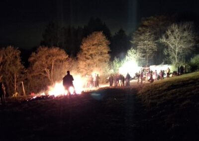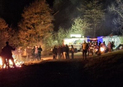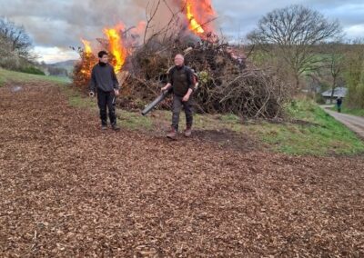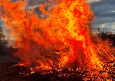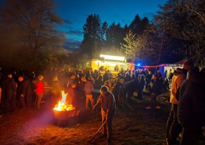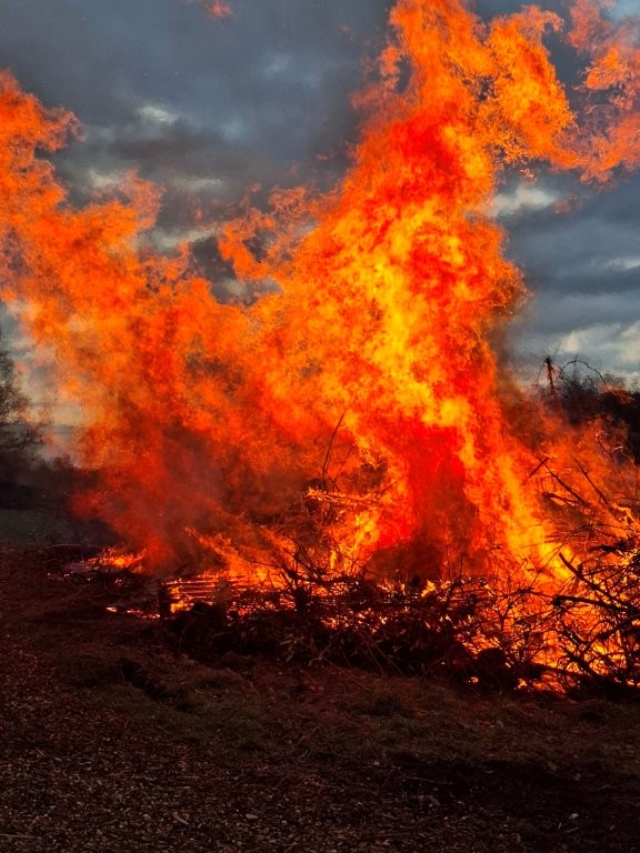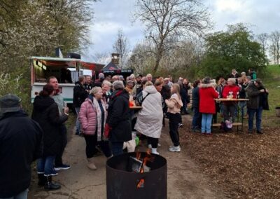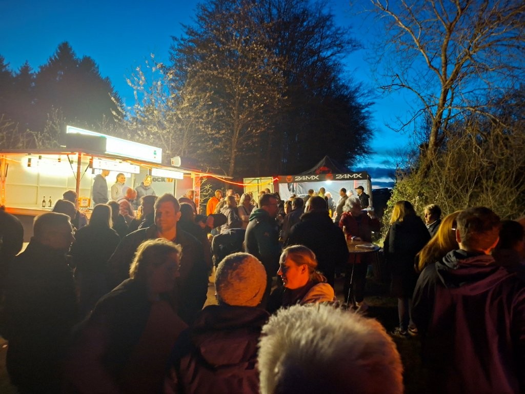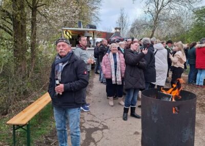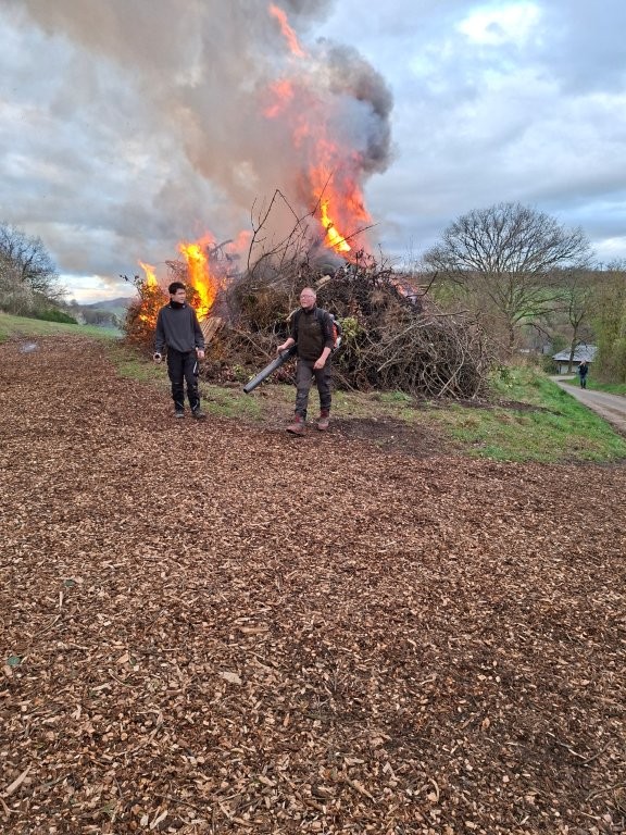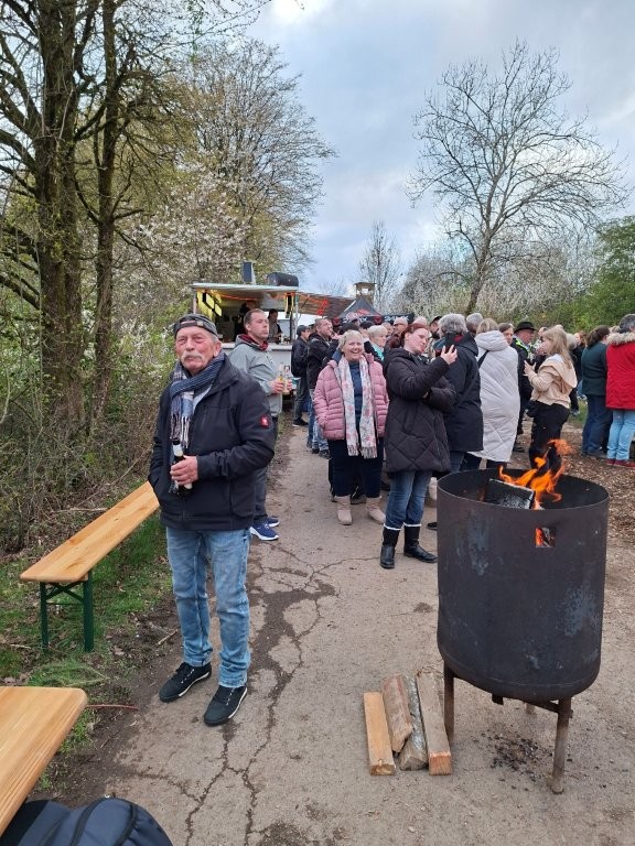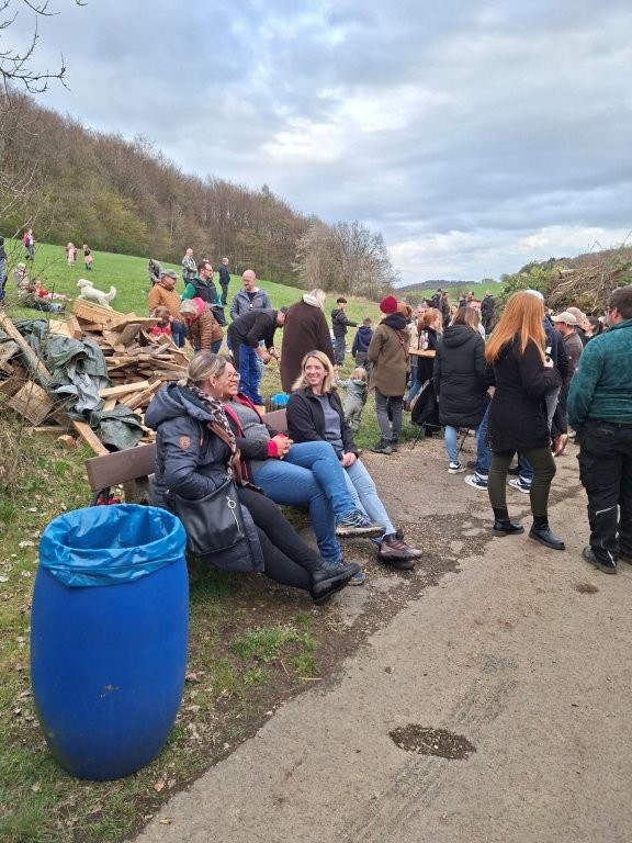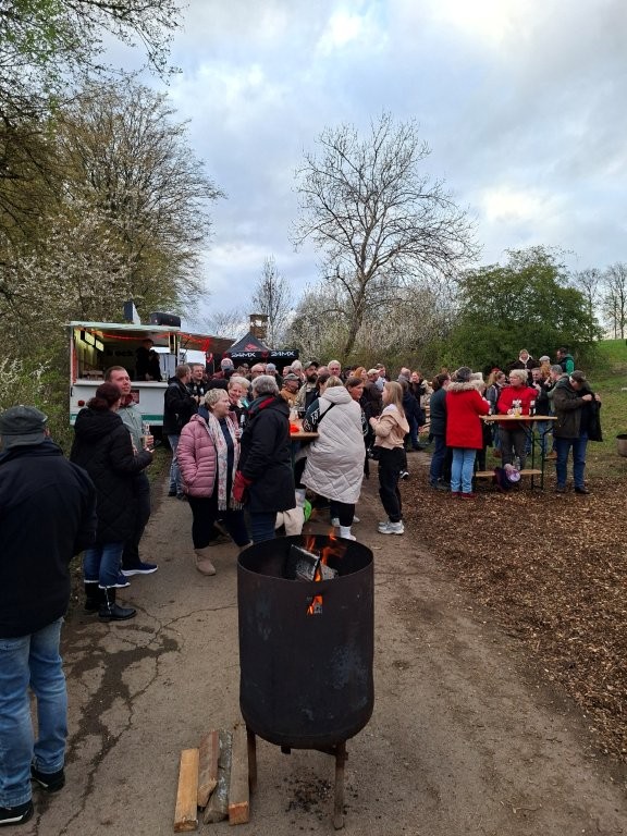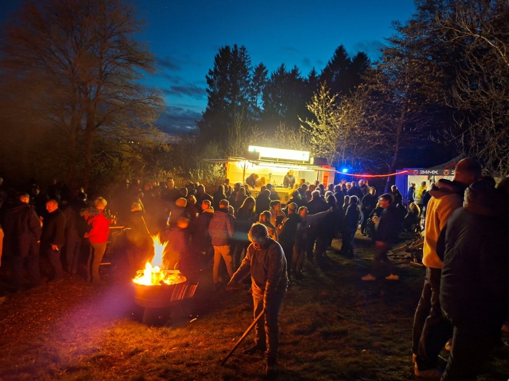 Nachdem das Abbrennen von Osterfeuern im letzten Jahr wegen einer Dürrephase abgesagt werden musste fanden sich in diesem Jahr wieder weit über 100 Besucherinnen und Besucher am Osterfeuer oberhalb des Dorfes ein. Trotz einigem Regen in den Tagen vorher stand das Feuer schnell in hellen Flammen. Feuertonnen sorgten bereits zu Beginn der Veranstaltung für eine schöne Atmosphäre. Nicht nur die Erwachsenen freuen sich, dass die Veranstaltung (fast) jedes Jahr stattfindet, nein auch eine große Anzahl von Kindern erwarten gespannt, dass das riesige Feuer angezündet wird.